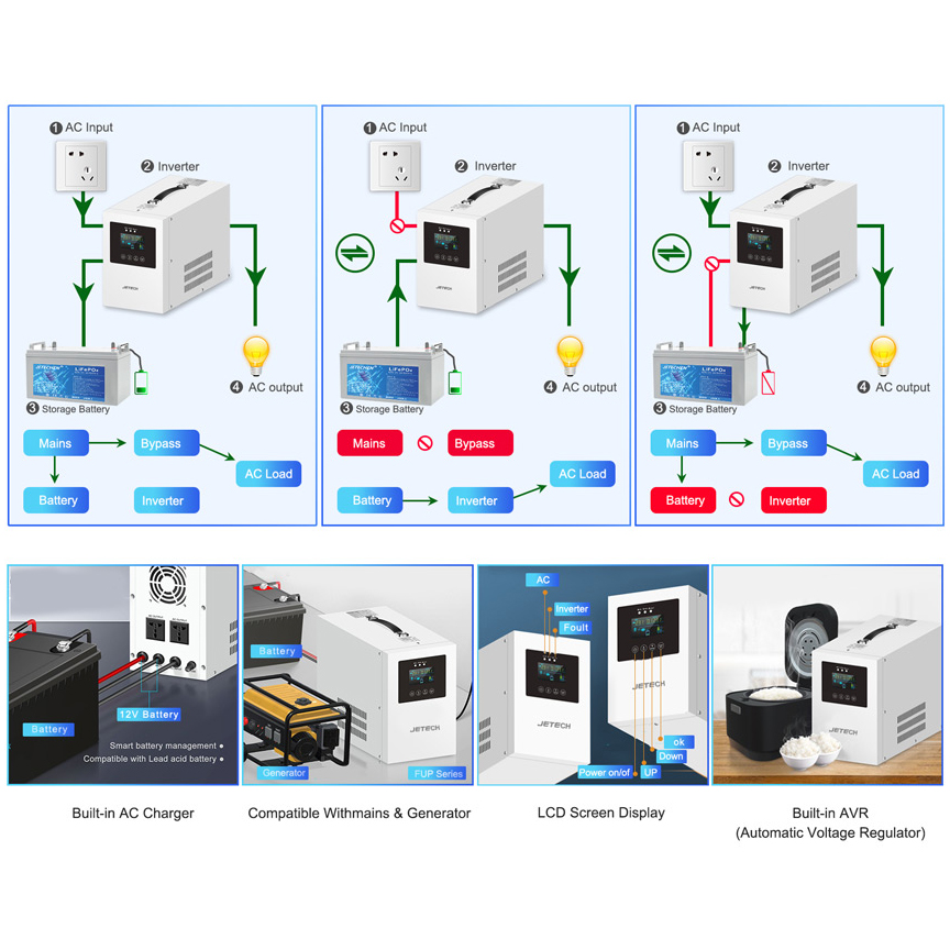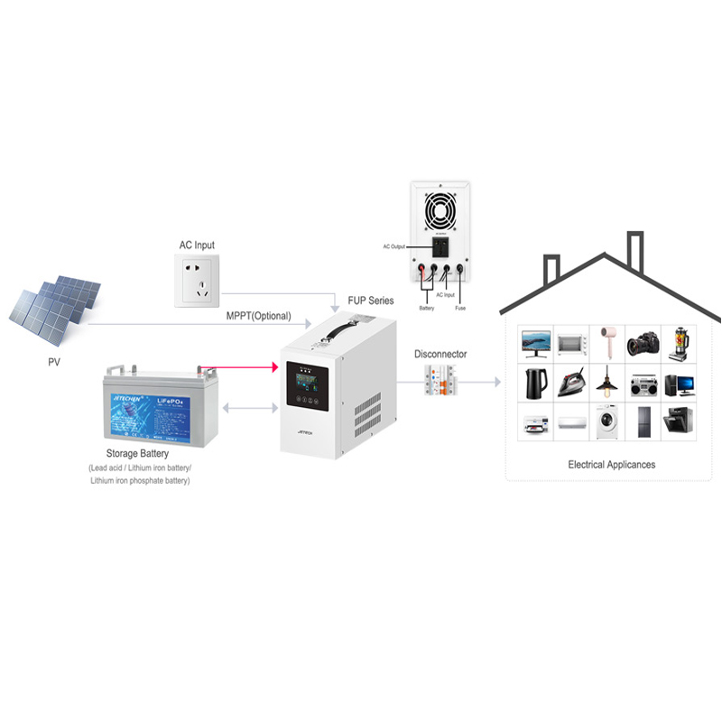 The UPS Inverter system designed to use in the area where the grid power supply is not stable with DC charger for 12V 24V for battery, Stable Voltage and UPS function together, it can be compatible to PV MPPT for household power back up. Compared With PPS, this inverter system have almost function and much better cost advantage with more flexible choices for battery power.