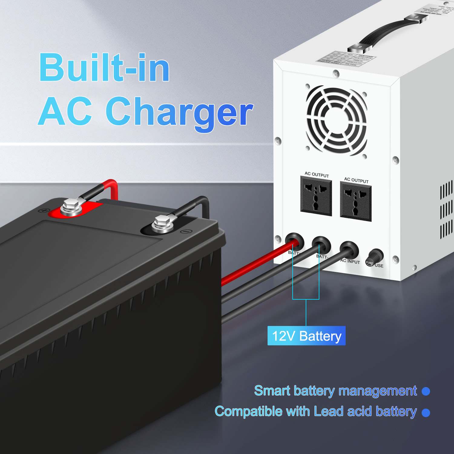 • DC Charger Function: The inverter integrated with DC Charger for 12V 24V 20A to charge LiFePO4 battery, provide more choices for client to pick different battery.